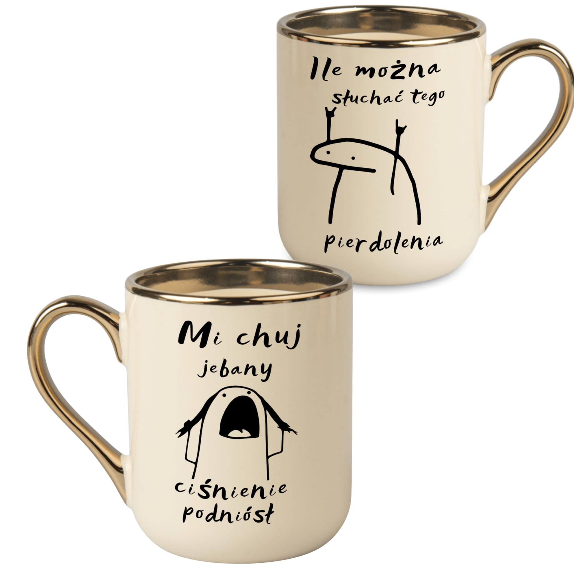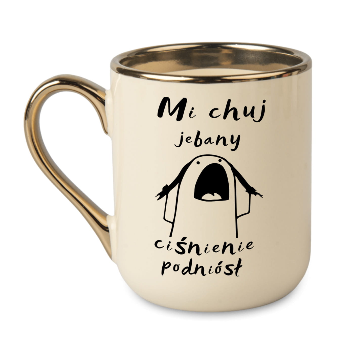 Kubek elegant kremowy grafika i napis "Mi chuj jebany ciśnienie podniósł" / "Ile można słuchać tego pierdolenia" 330ml personalizowany