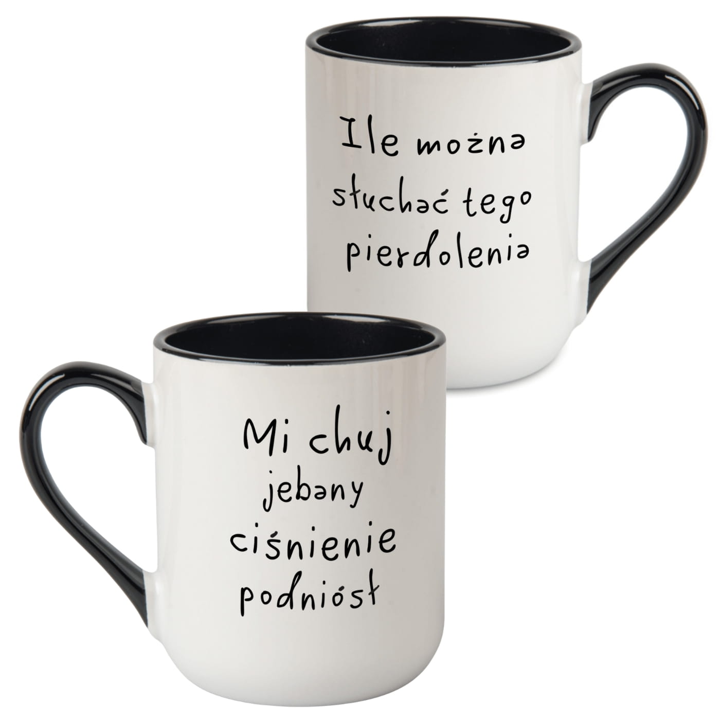 Ceramiczny kubek z nadrukiem „Ile można słuchać tego pierdolenia” oraz „Mi chuj jebany ciśnienie podniósł” to idealny wybór dla osób, które lubią dosadny humor i nie boją się odważnych haseł. Taki kubek od razu wyróżnia się w pracy, w domu czy w towarzystwie znajomych.
