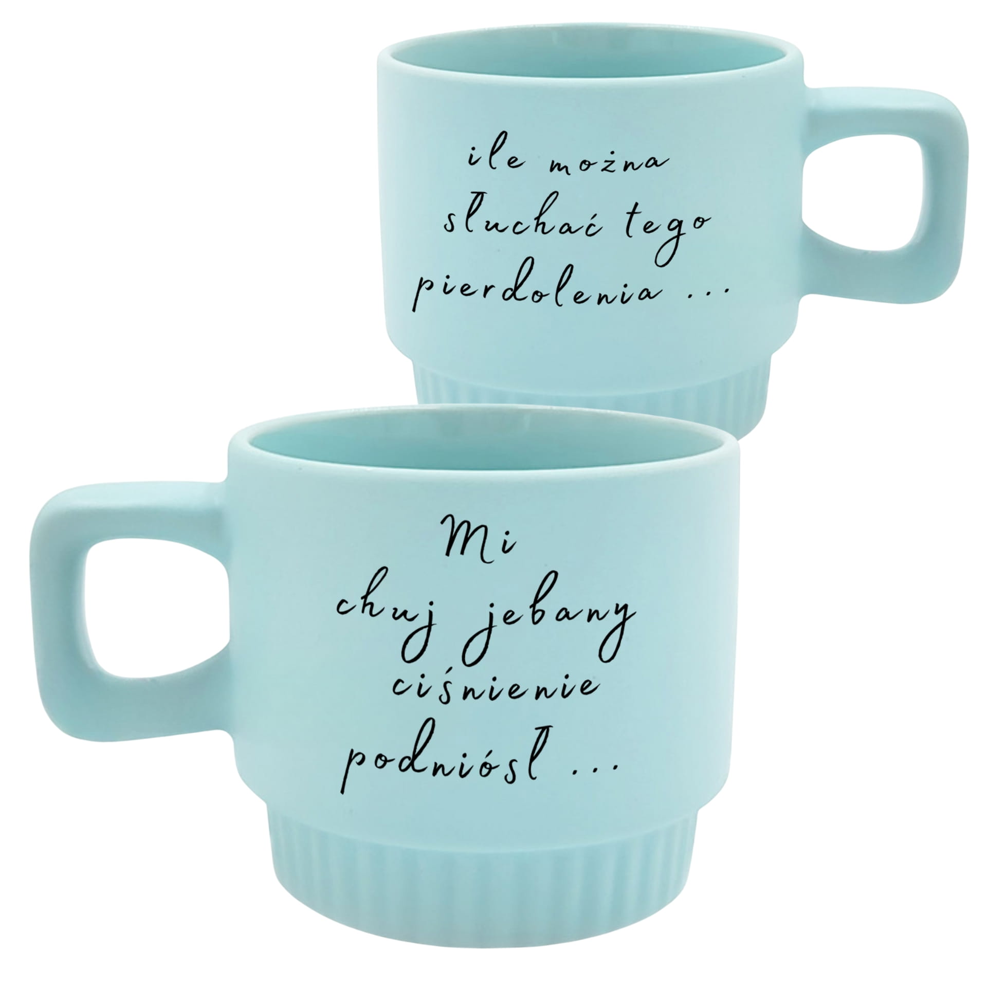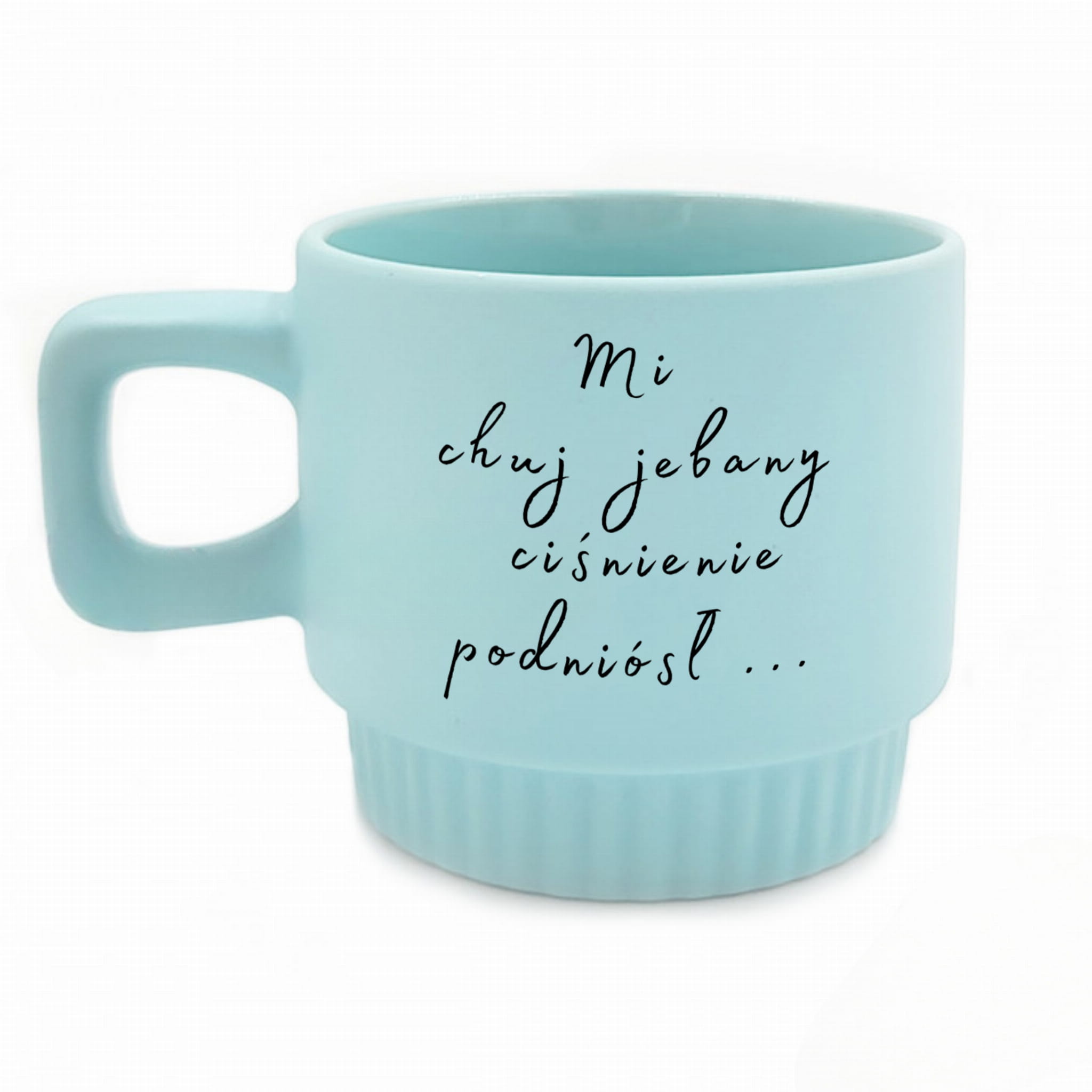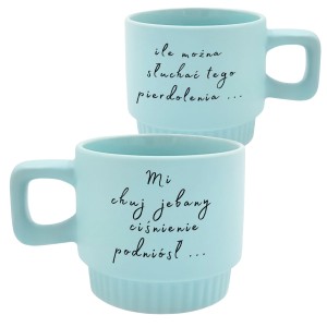 Kubek Venti jasnoniebieski z napisem :Mi chuj jebany ciśnienie podniósł / Ile można słuchać tego pierdolenia" 300ml personalizowany