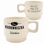 Kremowy kubek „Pani Kierowniczka” z imieniem – personalizowany kubek dla szefowej