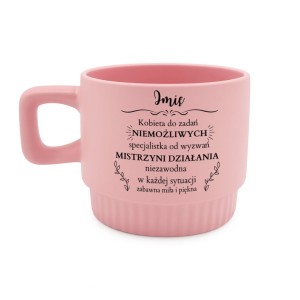 Różowy matowy kubek personalizowany z imieniem – Kobieta do zadań niemożliwych