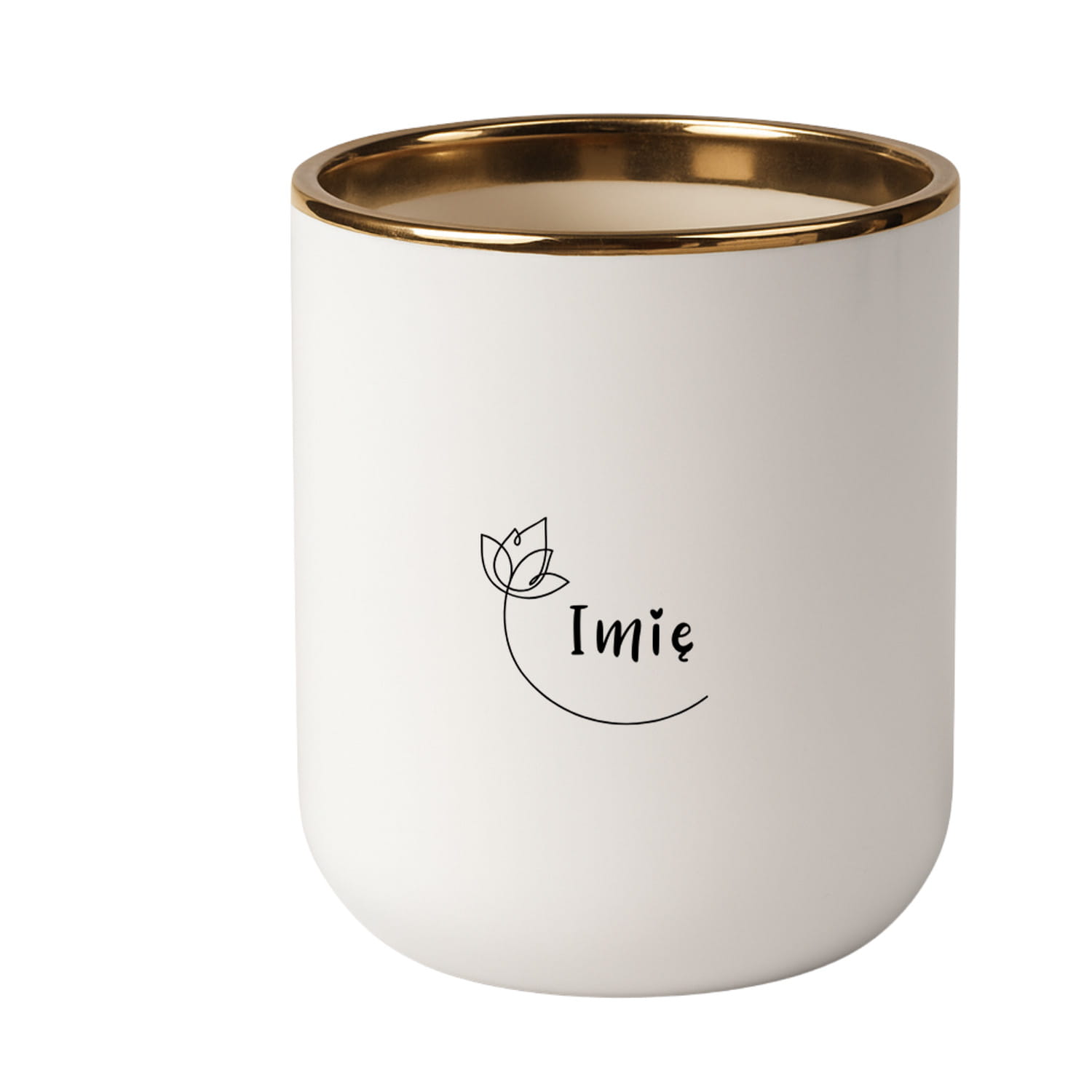 Pośrodku, między grafikami, dodajemy Twoje imię lub imię osoby obdarowanej – subtelna personalizacja, która nadaje temu kubkowi unikalny charakter.