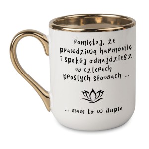 Kubek „Mam to w dupie” – złota elegancja i bezcenna równowaga ducha