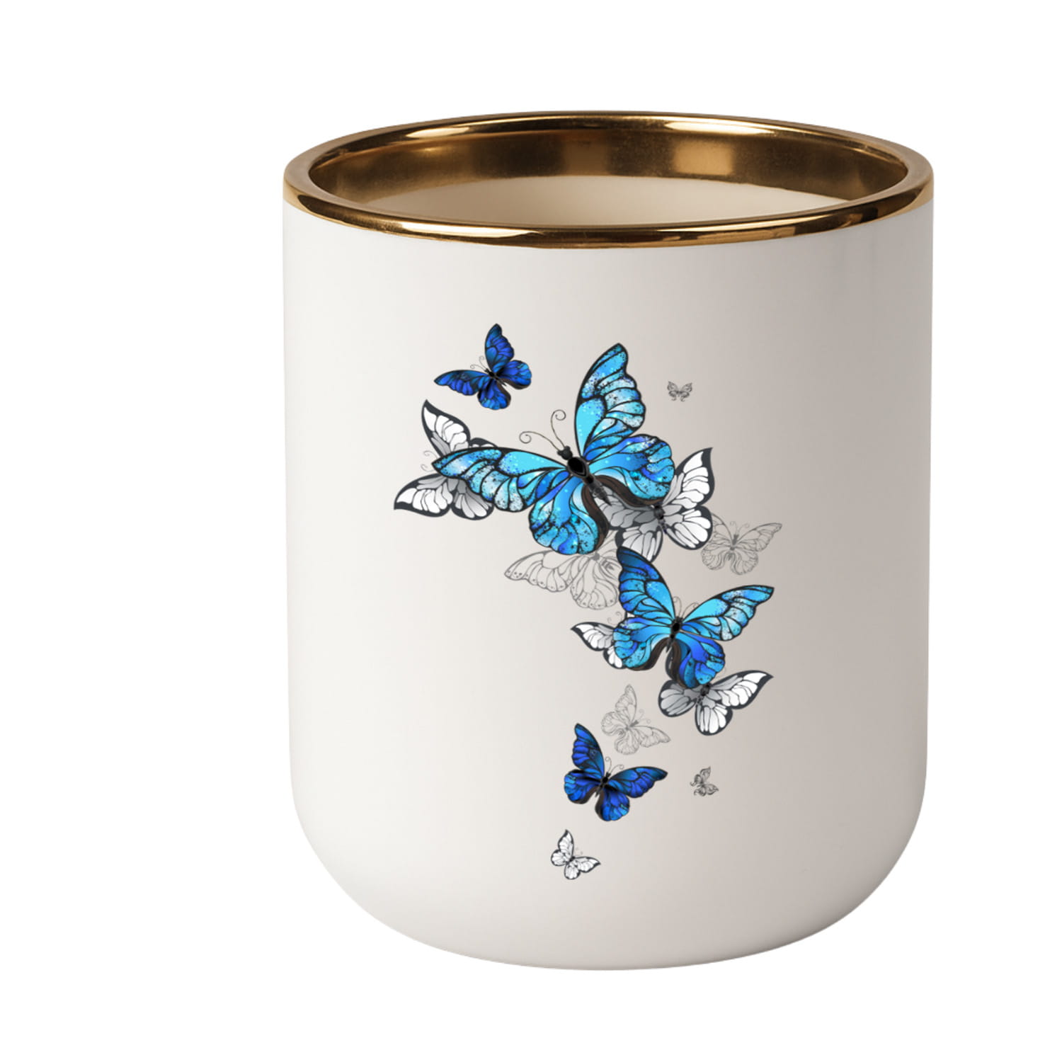 a środek kubka zdobi lekki i pełen wdzięku motyw niebieskich motyli.
