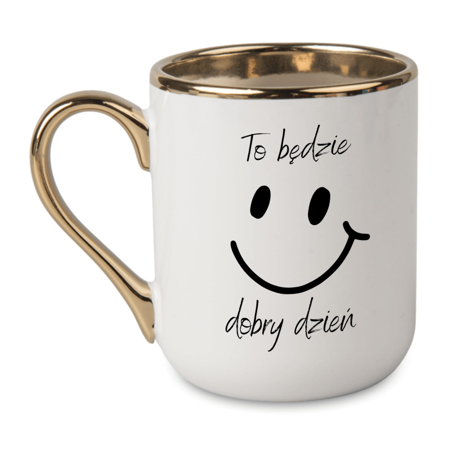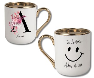 Kubek elegant biały "To będzie dobry dzień"/ Elegancka litera z imieniem - 330 ml