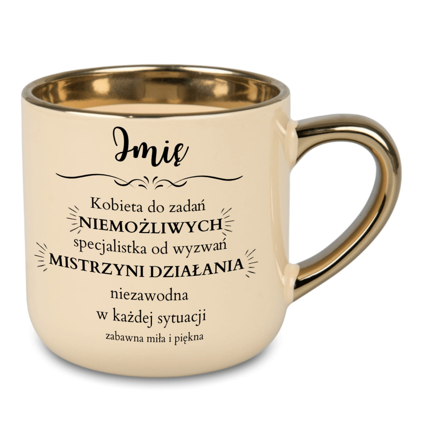 Kubek elegant kremowy szeroki "Kobieta do zadań niemożliwych ..." personalizowany 400ml