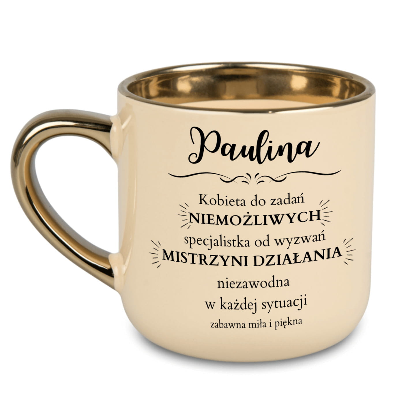 Kubek personalizowany ze złotym uchem i rantem – 400 ml