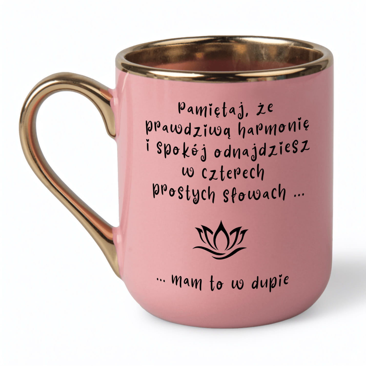Kubek personalizowany z zabawnym tekstem – różowy ze złotym wykończeniem