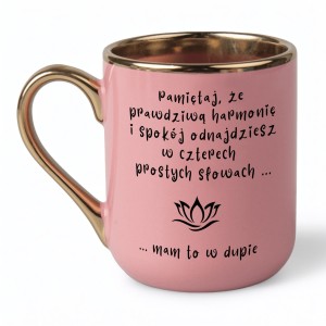 Kubek elegant różowy "Harmonia w prostocie ... mam to w dupie" personalizowany 330 ml