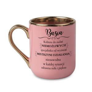 Delikatny róż w połączeniu ze złotym rantem i uchem tworzy elegancki i kobiecy design. Ten kubek to doskonały prezent dla kobiety, która potrafi wszystko i nie boi się żadnego wyzwania. Dwustronny nadruk sprawia, że napis jest widoczny z każdej strony, a całość wygląda stylowo i z klasą.