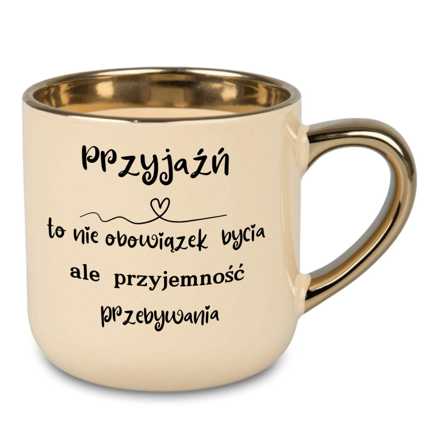 Kremowy kubek ze złotym uchem – wyjątkowa przyjaźń w eleganckiej oprawie