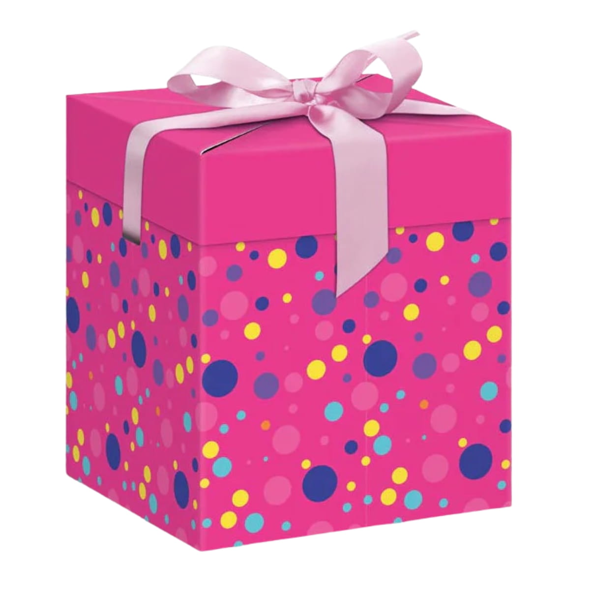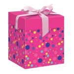 Pudełko na prezent 12x12x15cm różowe w kropki z wypełniaczem